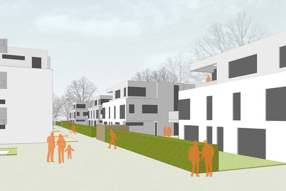 | Wettbewerb Geschosswohnungsbau Köln - Raderberg 2011 | PE Raderberger Str. GmbH & Co. KG / Planquadrat Elfers, Geskes, Krämer PartG Wohnen Wettbewerb | Kosten -- € Kubatur 98.500 m³ Fläche 19.000 m² |