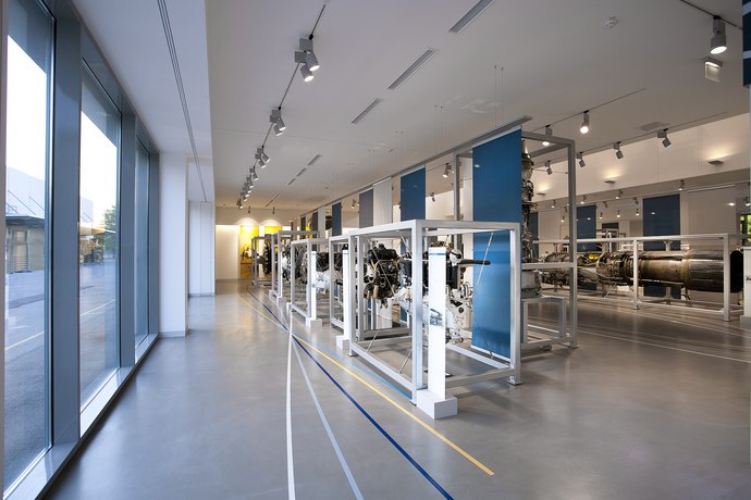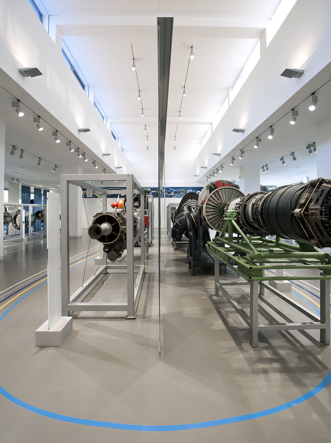 Als zeitgemäßer Rahmen für die Ausstellung hochwertiger Triebwerke wurden bestehende Museumsflächen erweitert und neu strukturiert. Zentraler Bestandteil des offenen Raumkonzepts ist ein Veranstaltungs- und Vortragsbereich. Zur Stärkung des Außenbezugs wurden die Gebäudefassaden mit großzügigen Verglasungen versehen. Durch Einbeziehung der bestehenden Hofüberdachung ist eine geschützte Erweiterung der Ausstellungsfläche in den Außenbereich möglich.